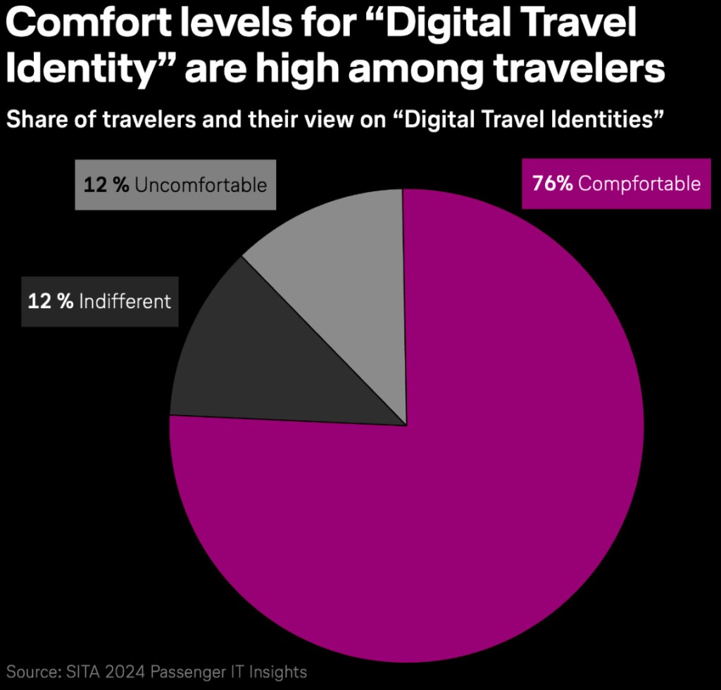 According to SITA’s 2024 Passenger IT Insights, 76% of travellers say they’re comfortable using a Digital Travel Identity. Only 12% feel uncomfortable. The rest don’t care either way. Which is fine. Not everyone has to lead the charge.